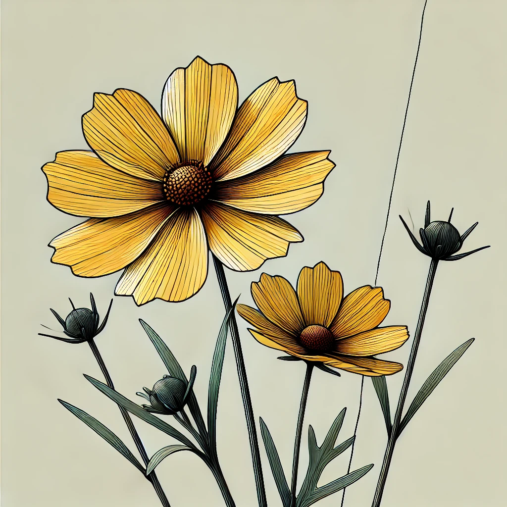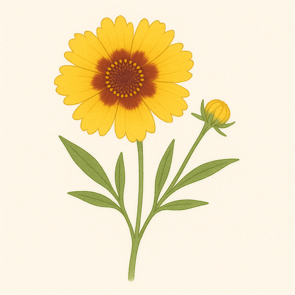 季節の花だよりv 【ジャノメギク(蛇の目菊/Coreopsis tinctoria)】 【タイトル】夏から秋を彩る花:ジャノメギク【ディスクリプション】ジャノメギクは、黄色の花びらに赤褐色の模様が入る個性的な花。まるで蛇の目のように見えるユニークな姿が、夏か... -
